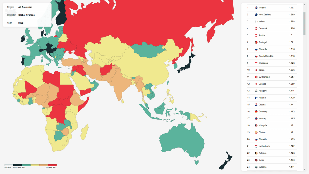 On the Global Peace Index map below, you’ll find that both Japan and Malaysia rank in the top 20 safest countries. However, Japan is technically safer and is ranked at the 10th spot compared to Malaysia at the 18th position.