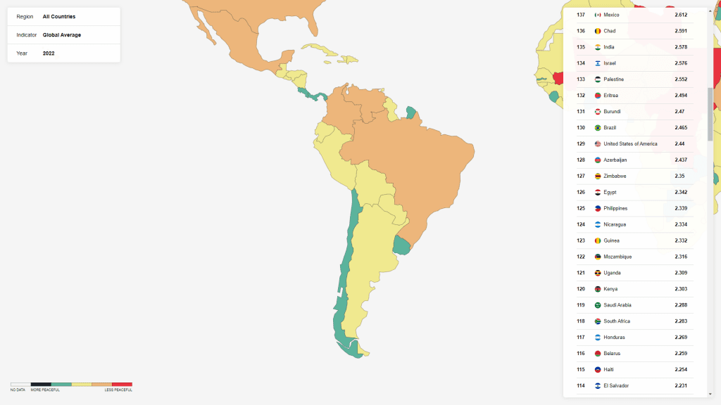 General crime rates are also significantly lower in Paraguay compared to Mexico, as seen on the Global Peace Index map below: